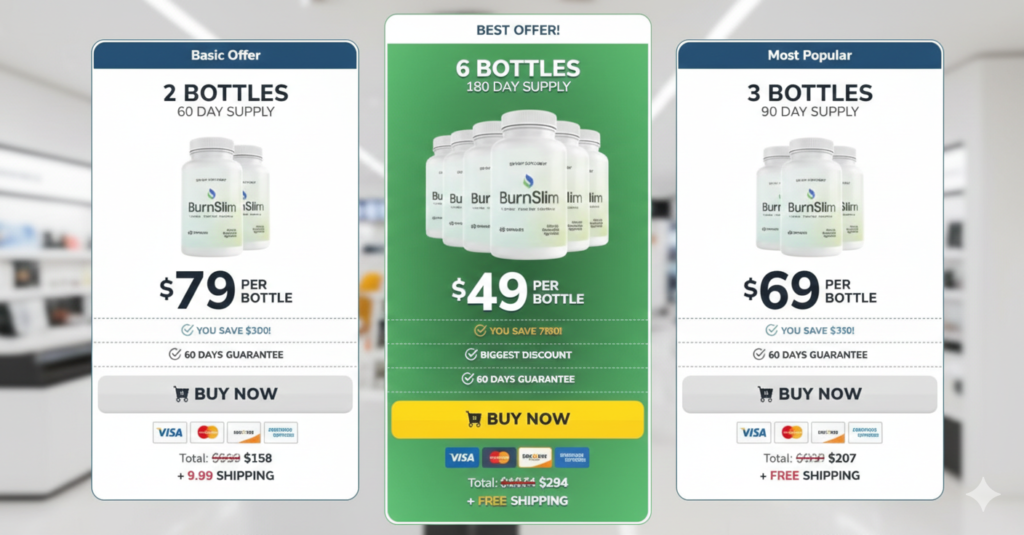 Burn Slim Capsules are typically sold online, often through official websites or third-party marketplaces. Common pricing models include: